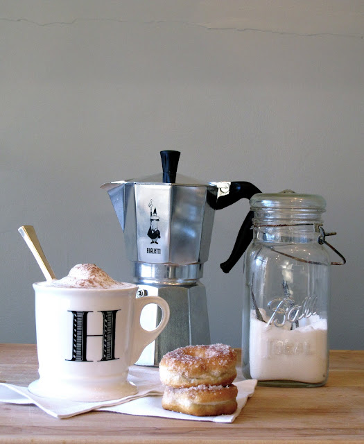 The donuts are best served with an authentic Italian cappuccino... something we got addicted to on our honeymoon in Italy. We were convinced that we needed a major machine to make it at home, but while we were staying at a bed and breakfast in the Tuscany countryside they served us fabulous espresso in this simple espresso kettle. It completes a great breakfast.
