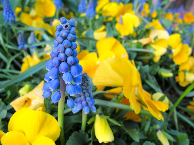 Pansies and grape hyacinth were stuffed into every planter, welcoming in Spring.