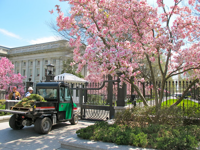 After the Tidal Basin I headed to The White House. This is the US Treasury building that sits next to the White House. This tulip magnolia tree was one of the most brilliant in the city and the grass the most lush.