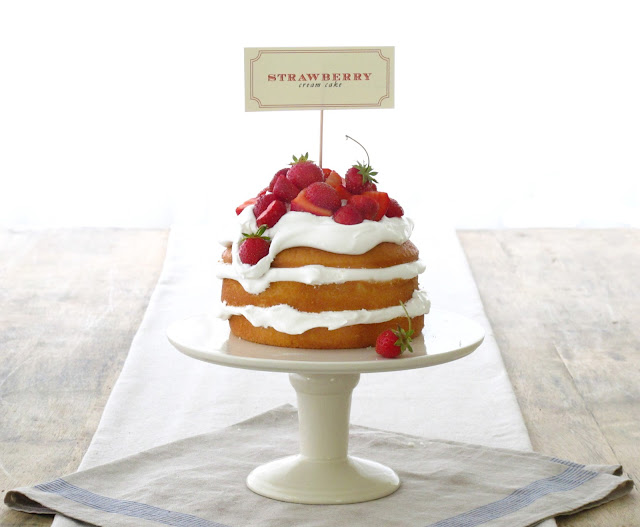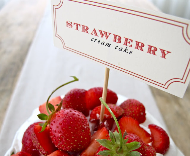 I've created a Strawberry Cream Cake label for you to print to make your creation look extra special. If you plan to make other desserts, just print the blank labels and write in (or type in) the name of your dessert.