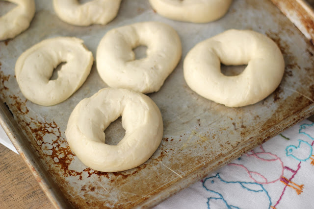 Poke a whole in the middle of each section, then stick a finger from each hand in the hole and sort of wind them, stretching the center hole. Place them on a greased baking sheet. If you want to get extra fancy, you can use the Donut Cutters from my store. They come in two sizes... and you'll get the holes!