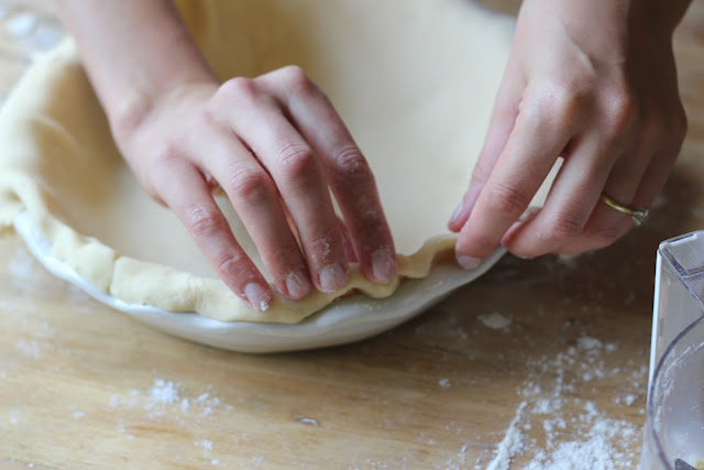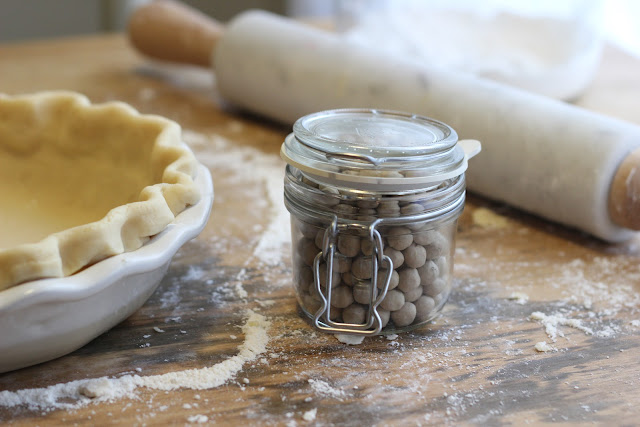 Oops. I forgot to prick the bottom before the pie weights went in! You an brush the crust with an egg wash if you like a golden crust.