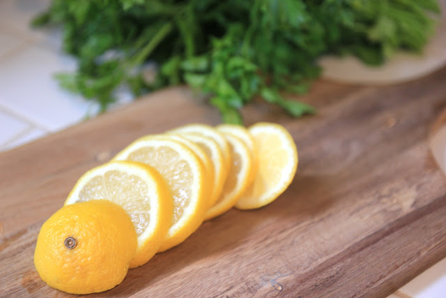 The soup is garnished with roasted lemon slices. If you have never tried cooking a lemon, I highly recommend it - they seem to transform.