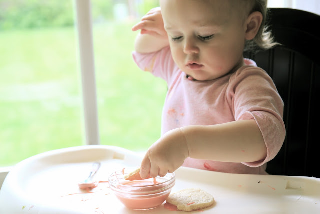 As she's gotten older she likes to be more hands-on in the decorating process... no longer can I give her a cookie to play with while I intricately decorate the others. So, I adopted a new, streamlined method for decorating.