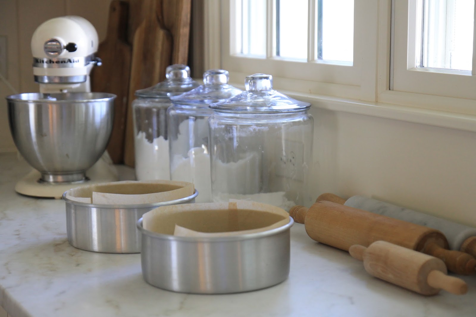 I use Parchment Paper to line the Round Cake Pans. I recently restocked both the White & the Natural Unbleached (shown here). I use the cake pan to draw a circle, then cut it out. Then I cut strips to line the sides of the pan with. I use a little butter to hold it in place - just swipe the stick around the pan once to create some glue.