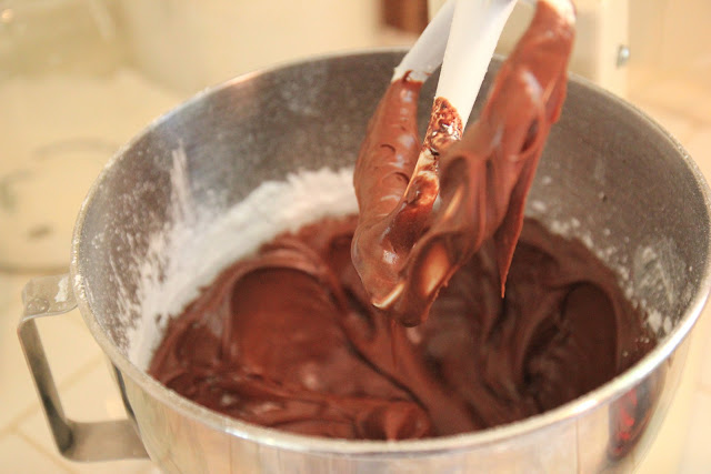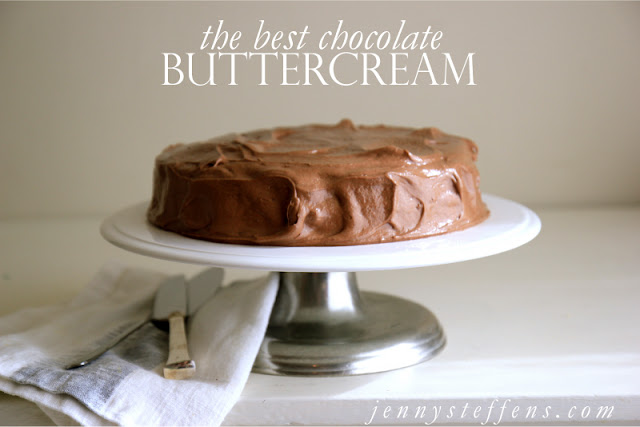 Mike doesn't like frosting - isn't that the most annoying thing ever? He's always telling me to only put a little bit on cakes and cupcakes. For those of us who have coveted the "corner" pieces of birthday cakes, this request is hard to comprehend (or obey). When I find an icing or frosting that Mike loves, I know I have struck gold - as I have with this chocolate buttercream. It is not too sweet, not too chocolately and gloriously creamy.