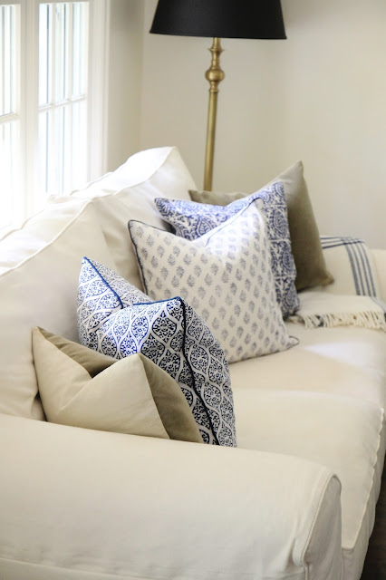 I love how they've freshen our hearth room. Blue and white is my favorite color combination; it is so seasonless and classic. I can't wait to incorporate more rusts and muted colors with them for Autumn.