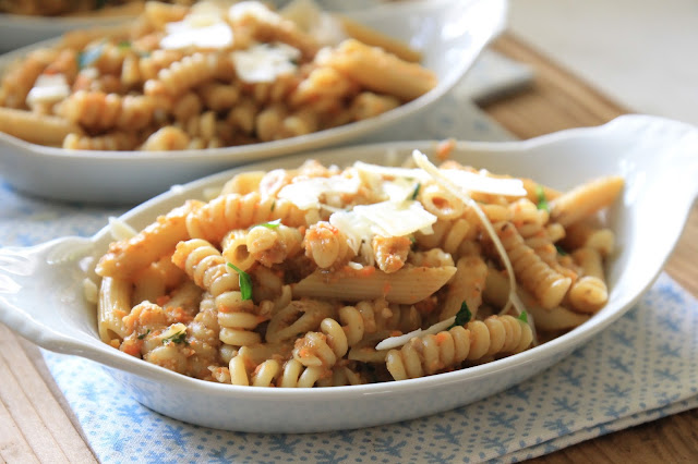 This is a new recipe I'll share later this week. It is made in a food processor - onion, carrots, and mushrooms pulverized, then sautéed with olive oil, garlic and tomato paste. The result is a hearty, pasta, topped with a bunch of cheese : )