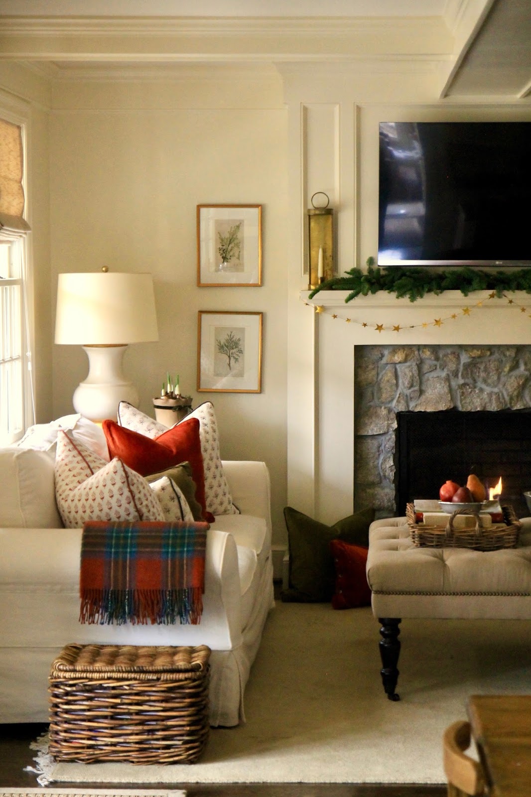 My Plaid Blanket Wrap has found its home on the sofa. It is the perfect inexpensive accent to warm the room up.