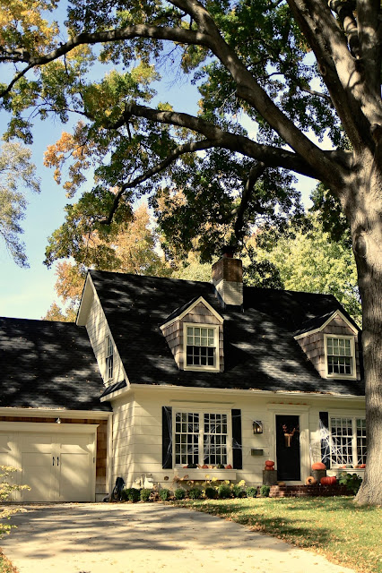 I was hoping to get some "fall" photos before the Halloween spiderwebs went up, but, I got to anxious to get our house spooked out. After Halloween, the spiderwebs will come down and it will look classic autumn again. We love halloween around here.