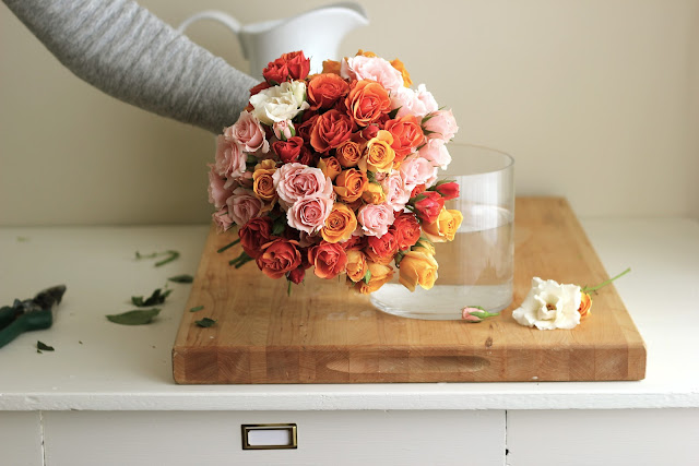 DIY Sweetheart Rose Arrangement | Coral, Peach and Pale Pink Roses