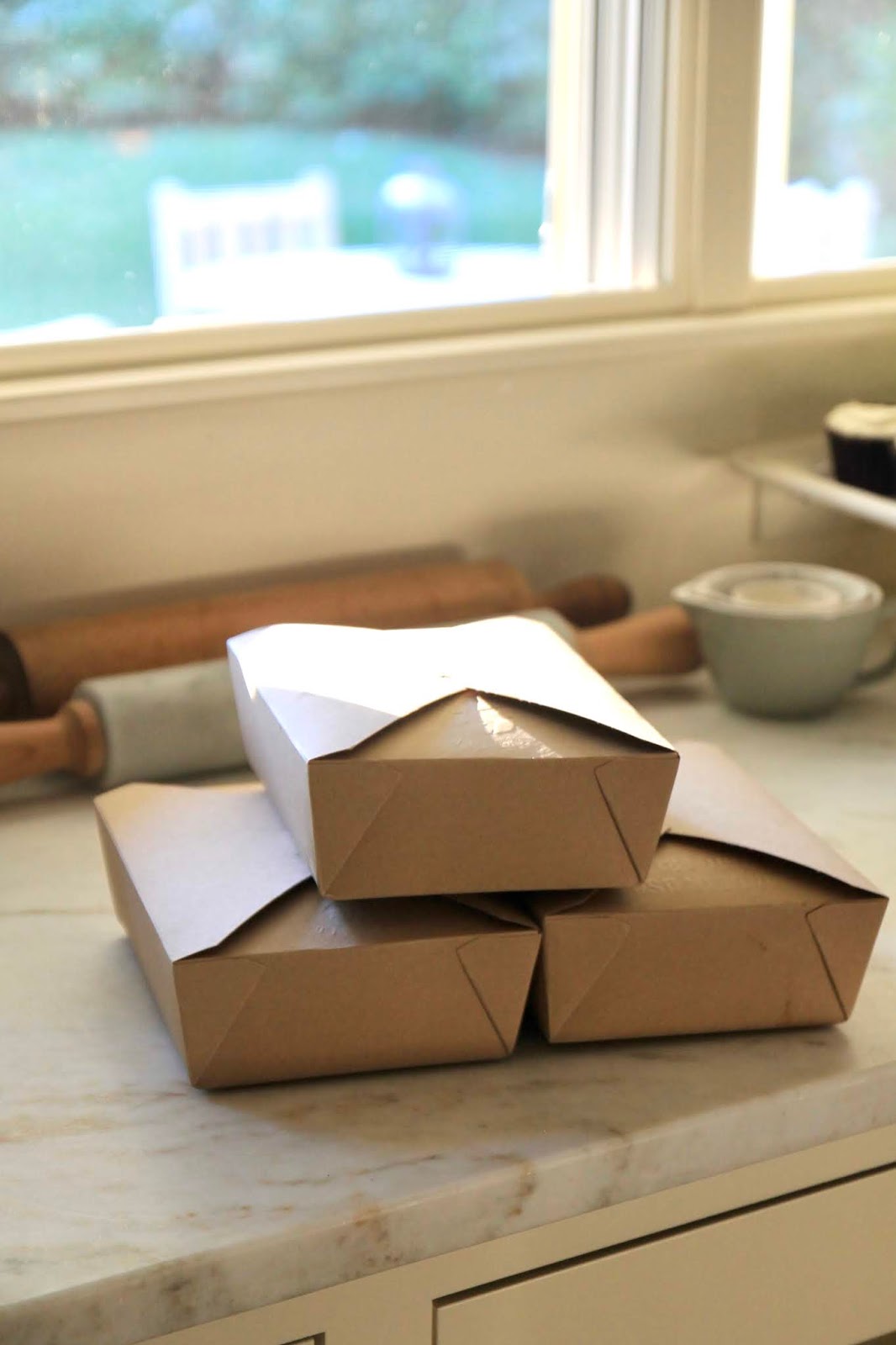 This week, I took lunch to the School House girls since they've been working so hard on packing up orders from the fall launch. I've added these Kraft To-Go Boxes (set of 10, $6) to the store just for moments like these. We've used them so much in just the last week that I've had them at my house. Emma and I put sliced baguette, cheese and apples in for an impromptu picnic, too - so glad to be able to just recycle it when we're at the park instead of dragging it home to clean.