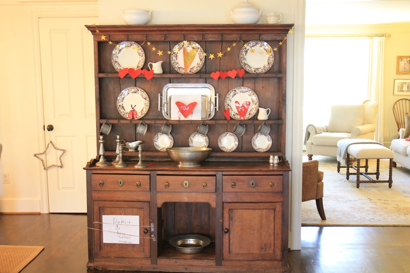 My favorite part of the Valentine's Day hutch is the barricaded cabinet on the left.