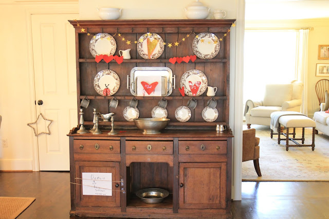 For Valentine's Day, Emma made more homemade valentine's and cut out hearts just for the hutch.