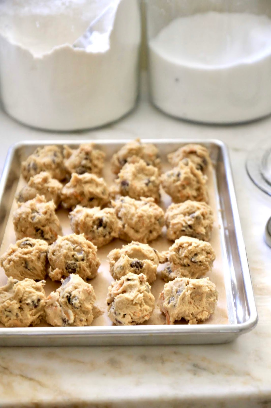 Note : These are scooped for the freezing. For baking, I would spread them out and do about 8-10 per large sheet, 4-5 per small sheet.