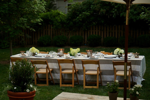 Our typical backyard entertaining looks nothing like this... more like kids running around, parents perched on the steps, everyone eating in laps or at the picnic table and not much sitting and relaxing by candle light. However, sometimes, we like to step it up and treat our friends to a real party.