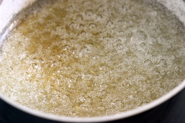 This is when you should remove it from the heat - it can go from chestnut to molasses colored in 30 seconds!