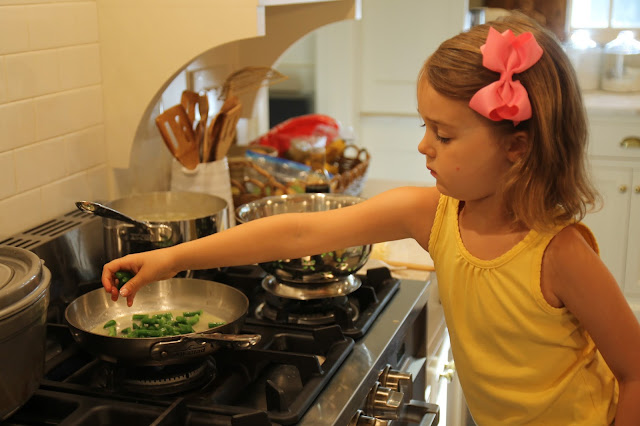 While I would never want to force her to love my passions, she seems to be interested in making and doing as much as I am. It is our goal for her to be capable of helping herself and others, and these kitchen skills will go along way for her. I think parents can get caught up in making sure their kids are very competent at many different swimming strokes, soccer skills, ballet positions and gymnastic tricks, but forget about life skills like being capable of making their own breakfast, lunch, or bed! Sorry, off my soapbox. I'll continue : )