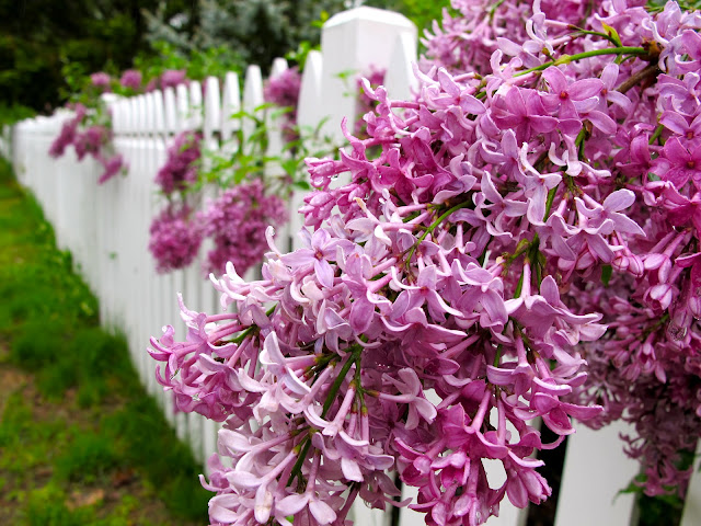 This light pink lilac is so sweet peaking through the picket fence.