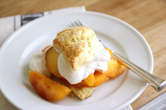 In a mixer, combine flour, sugar, baking powder and salt using the paddle attachment. Cut the cold butter into 1/2 inch pieces. Add the butter to the dry ingredients and mix on low until the butter is mixed in and is the size of peas.