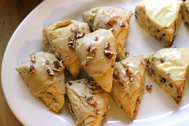 I know that posting a scone recipe is no surprise for me. However this is one of my tricks, I really believe that you don't need a million different recipes, just a few that you can alter each season or occasion. These scones are the simplest that I make (except maybe vanilla?). Just a basic recipe with a little lemon zest, then smothered in a buttery lemon glaze.