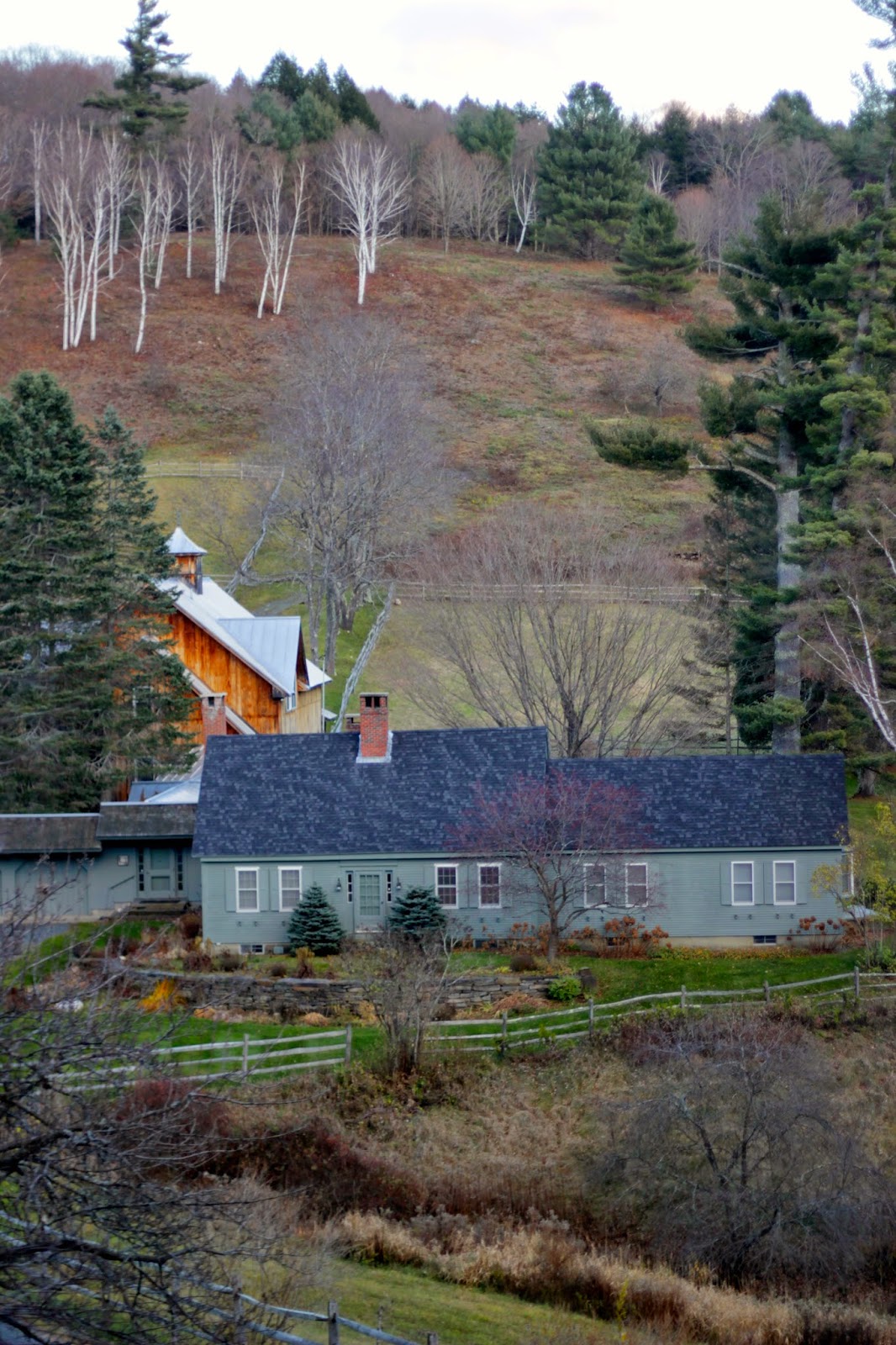This was one of my favorite farms. Wood barn, tone-on-tone green/blue house, pond, stone walls...
