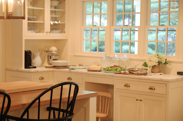 Since everyone naturally gathers around the island before dinner, I really like having an out of the way area to set out the platters ahead of time.