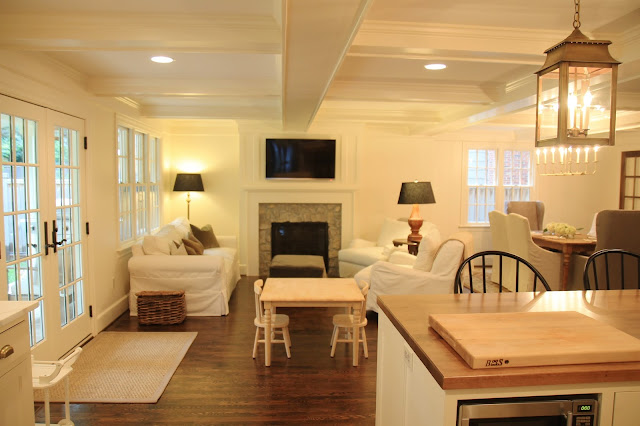 Here's the first glimpse of our hearth room - we're waiting on rugs for this room. Everything is so neutral right now, I'm getting anxious to add color with rug, throws and pillows. Hopefully I'll be able to make some decisions by end of summer ready for Fall.