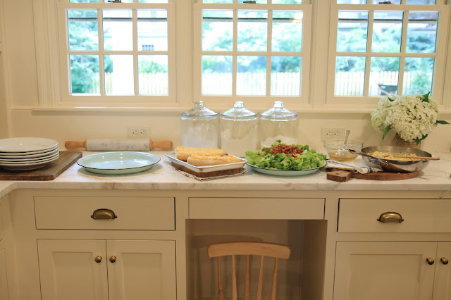 I laid out all of the food along the baking counter, which worked perfectly as buffet.