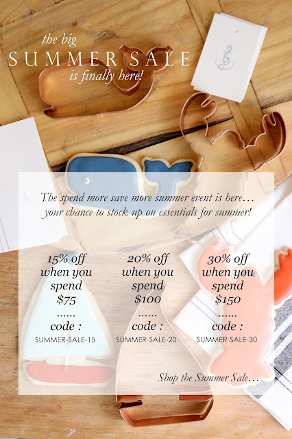 Today is the last day for 4th of July orders in my store. Take advantage of the Summer Sale (15-30% off, details below) to add some festive touches to your home this week. I thought I'd take you on a little tour of the couple of patriotic details we have going on in our home this morning. As I posted last week, I'm taking a more casual approach to blogging this summer, so these photos are unstyled, the lighting isn't great - I just grabbed my camera this morning and took photos of our house as is, while avoiding any messes strewn about : )Left : On our mantle we have annabelle hydrangeas from our yard in a pewter pitcher. The 18" taper candles are in Privot Berry Blue (on sale for $12) - my staple for the summer months. The two flags make the entire room feel dressed up for the 4th.