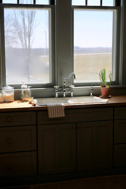 I just love this little blue kitchen. Another time, I'll show you what we keep in the cupboard for our entertaining essentials, too... basically creamware platters and enamelware along with some vintage wine glasses : )